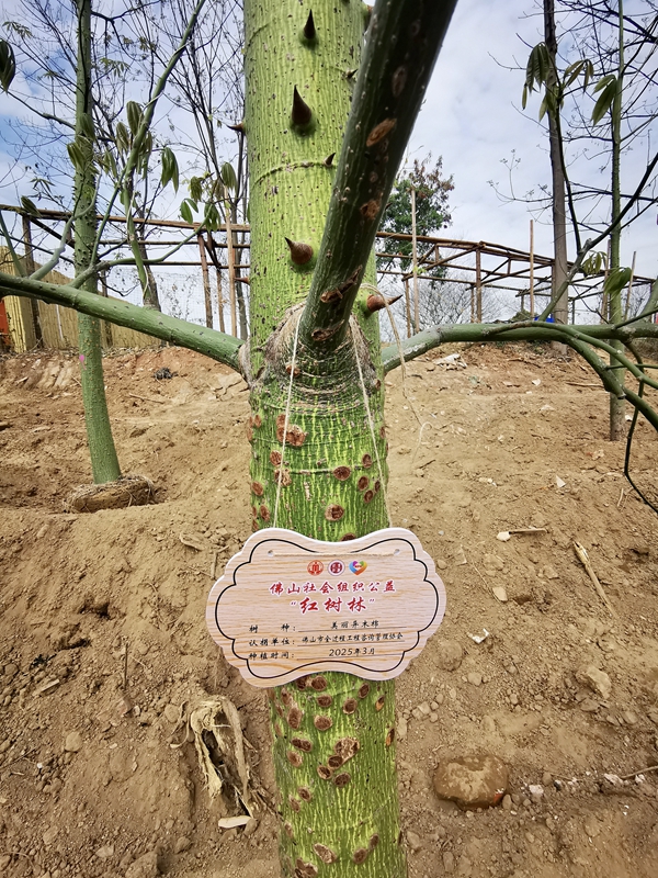 揭牌儀式后,400余名社會組織代表熱情高漲、干勁滿滿,分工協作進行培土、扶苗、栽種和澆水,將每一株美麗異木棉悉數栽下,最后還掛上了認捐信息樹牌,以實際行動守護佛山的綠水青山。