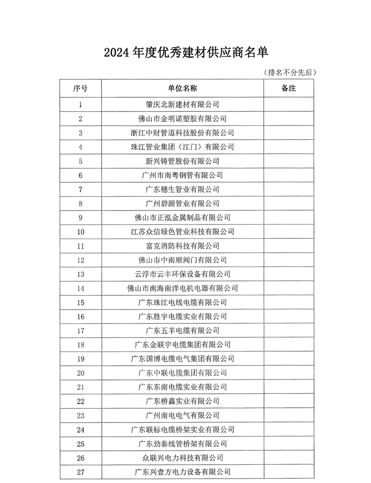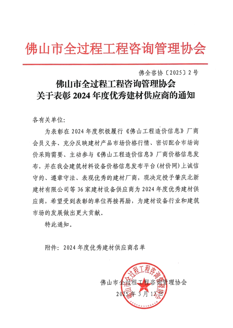 佛山市全過程工程咨詢管理協(xié)會關(guān)于表彰2024年度優(yōu)秀建材供應(yīng)商的通知
