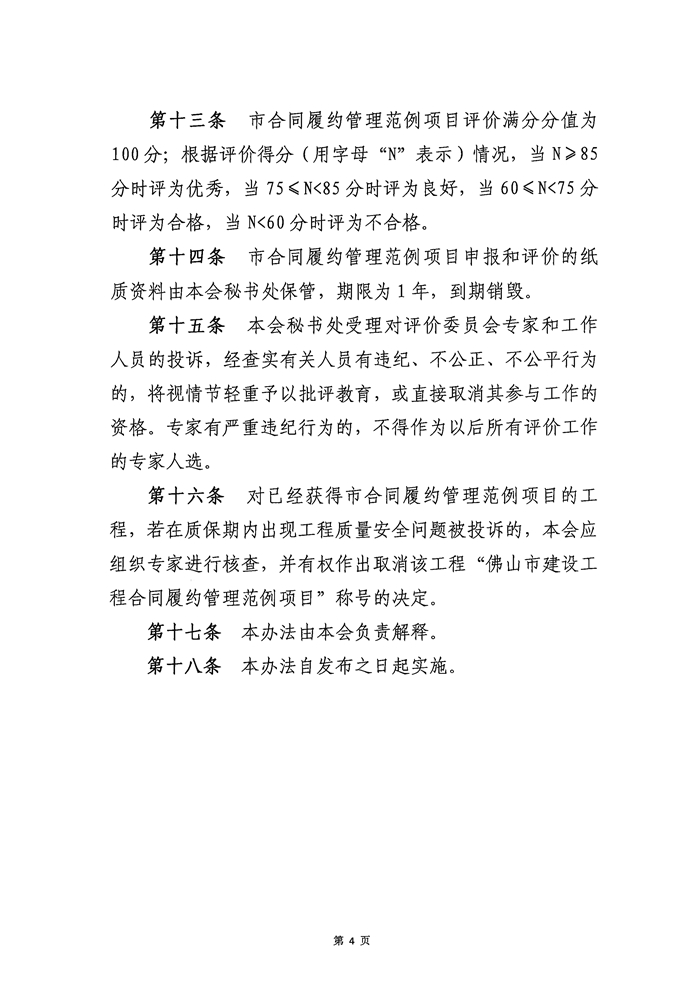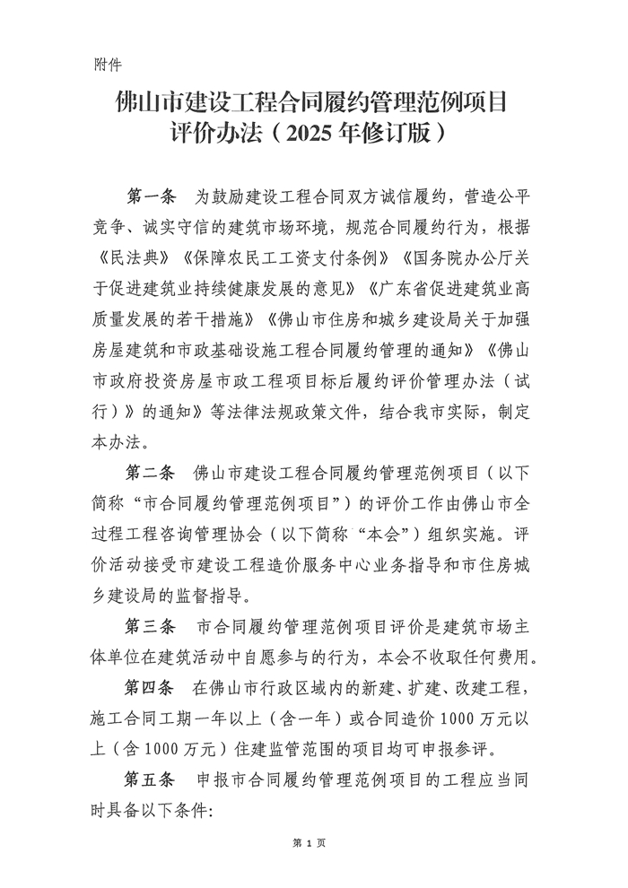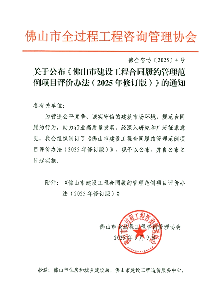 關(guān)于公布《佛山市建設(shè)工程合同履約管理范例項(xiàng)目評(píng)價(jià)辦法(2025年修訂版)》的通知