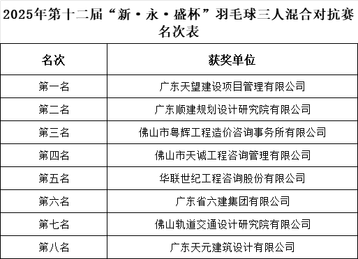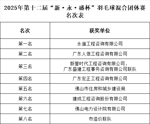 “新·永·盛杯”羽毛球團(tuán)體賽圓滿落幕,工程咨詢業(yè)活力綻放