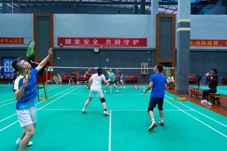 開幕式簡短熱烈,開賽后比賽迅速進(jìn)入狀態(tài)。賽場上,選手精神抖擻、斗志昂揚(yáng),高遠(yuǎn)球、扣殺等精湛球技頻現(xiàn),羽毛球如閃電穿梭,選手身姿矯健,精彩瞬間贏陣陣喝彩。