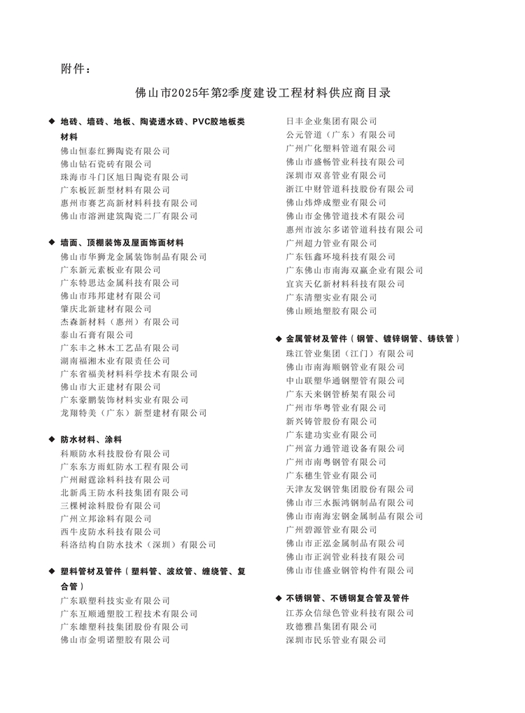 附件:佛山市2025年第2季度建設(shè)工程材料供應(yīng)商目錄