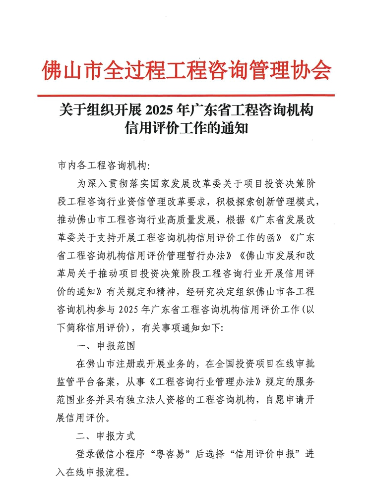 關(guān)于組織開(kāi)展2025年廣東省工程咨詢機(jī)構(gòu)信用評(píng)價(jià)工作的通知