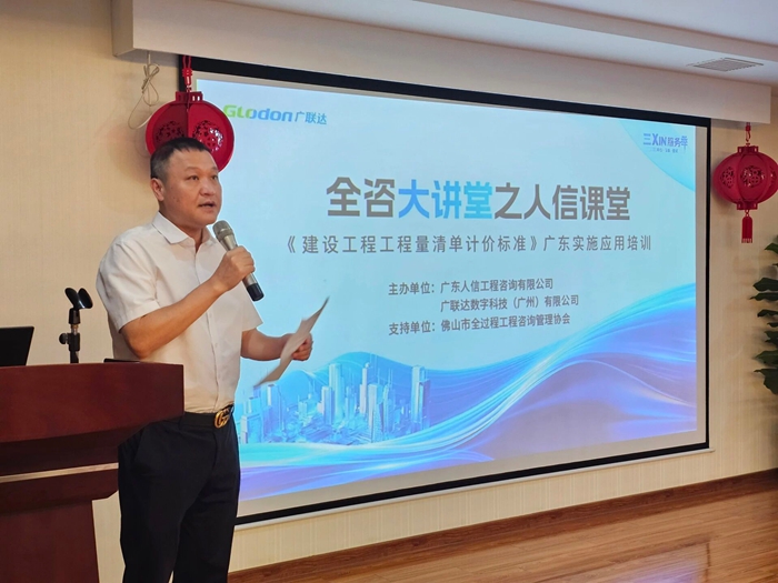 2025年9月16日下午,由廣東人信工程咨詢有限公司聯合廣聯達數字科技(廣州)有限公司主辦、佛山市全過程工程咨詢管理協(xié)會支持的“全咨大講堂之人信課堂——《建設工程工程量清單計價標準》廣東實施應用培訓”(全咨大講堂第3期)在人信集團順德總部圓滿舉行。