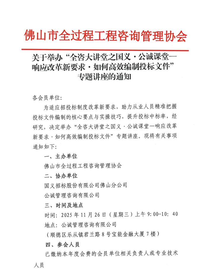 關(guān)于舉辦“全咨大講堂之國義·公誠課堂—響應(yīng)改革新要求·如何高效編制投標(biāo)文件”專題講座的通知