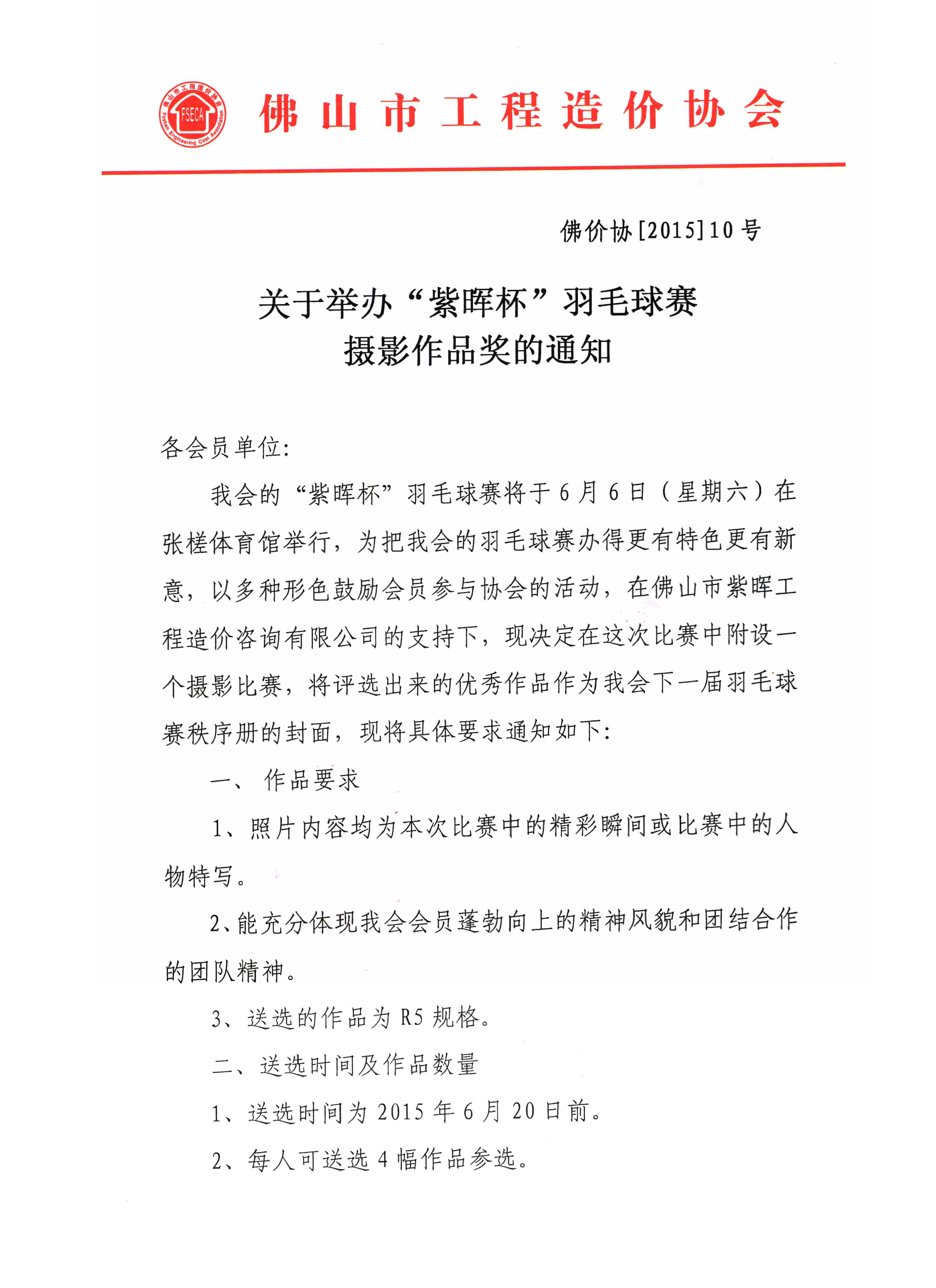 關(guān)于舉辦“紫暉杯”羽毛球賽攝影作品獎的通知