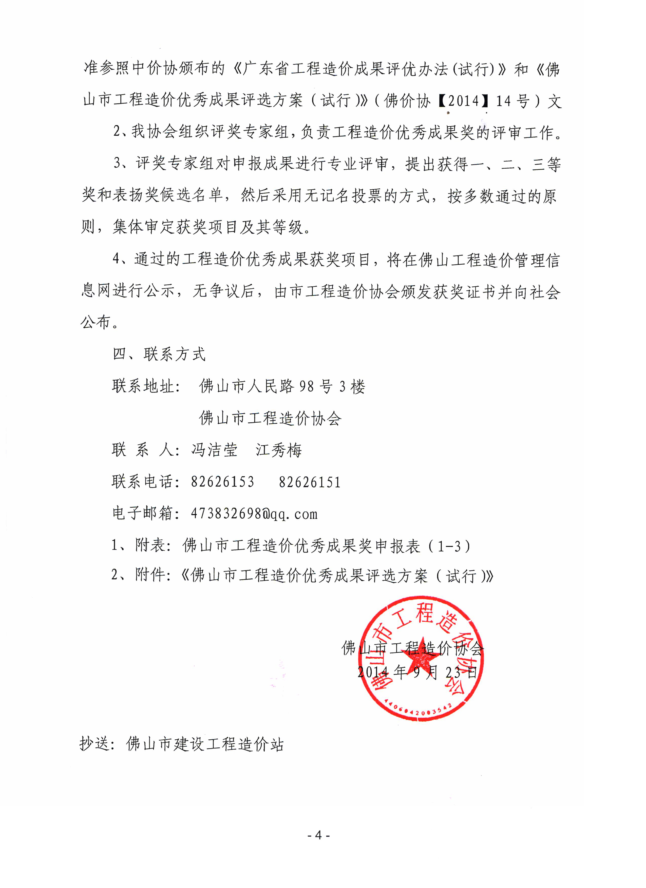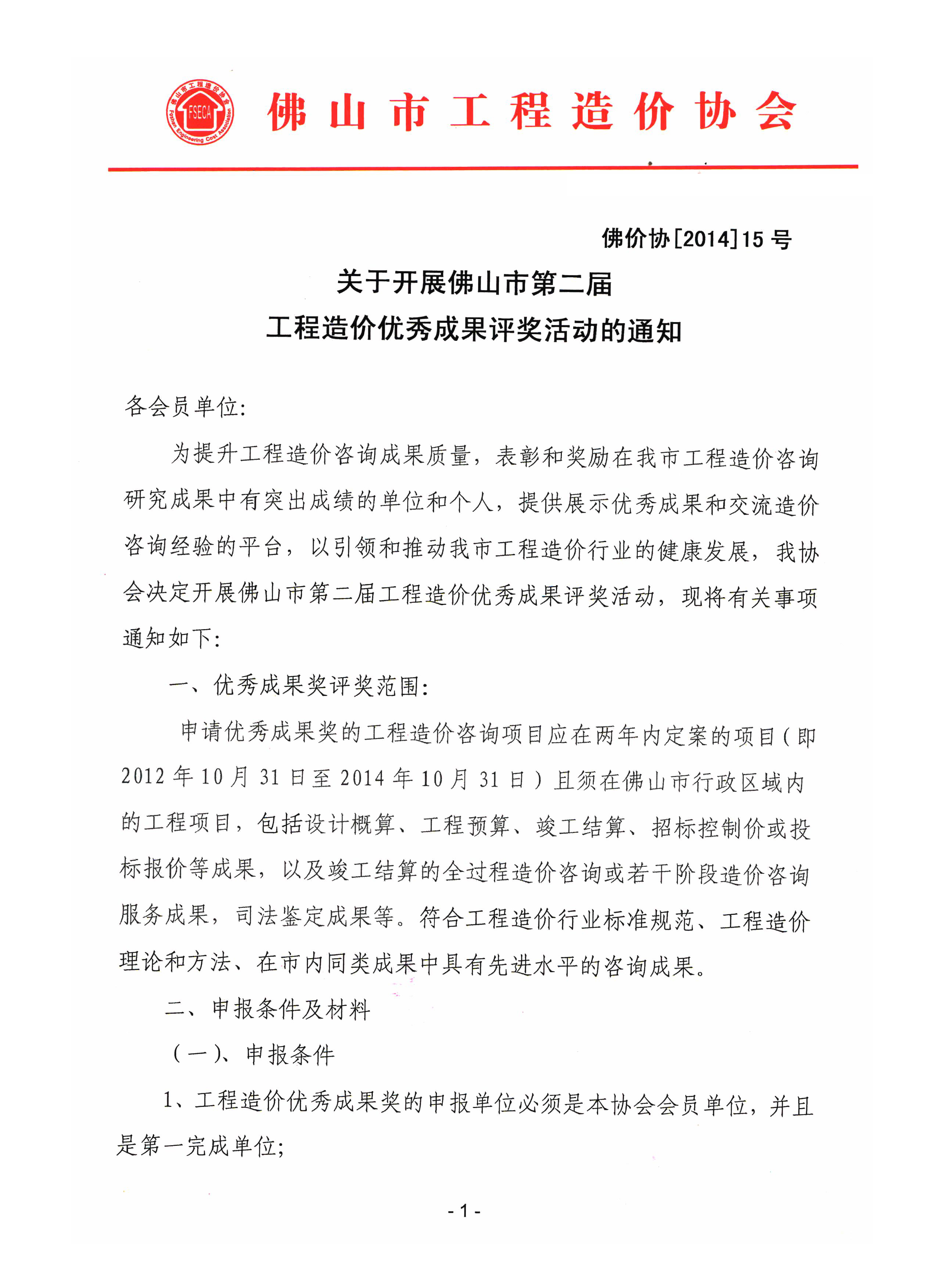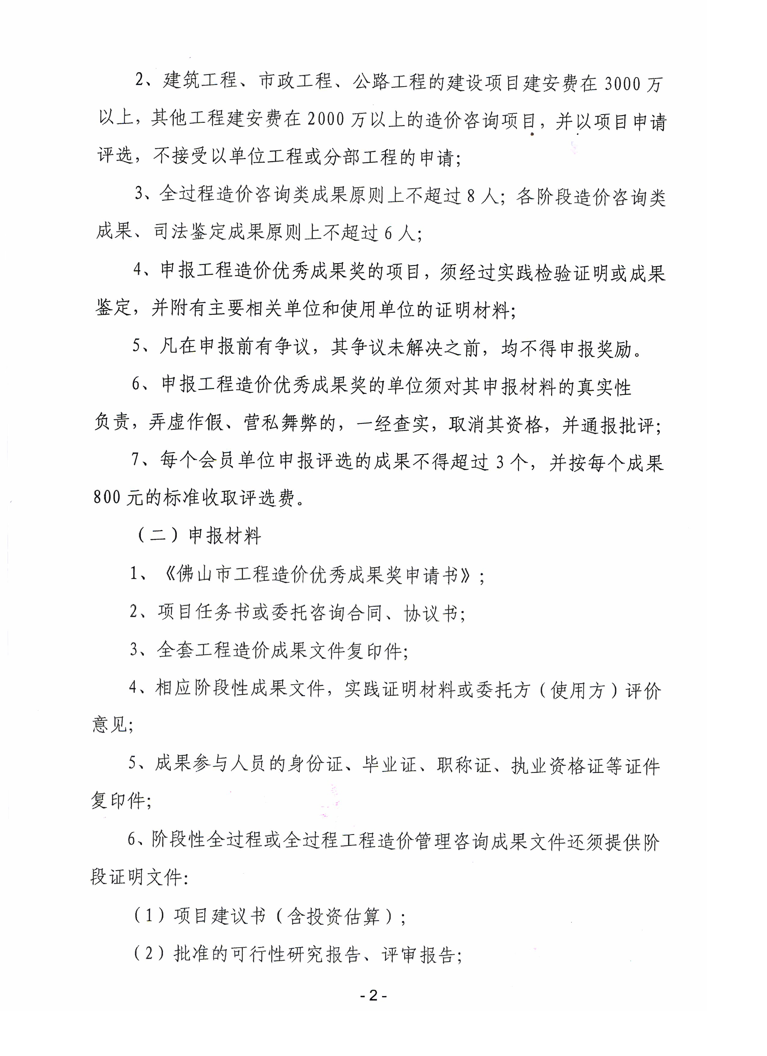 關于開展佛山市第二屆工程造價優秀成果評獎活動的通知