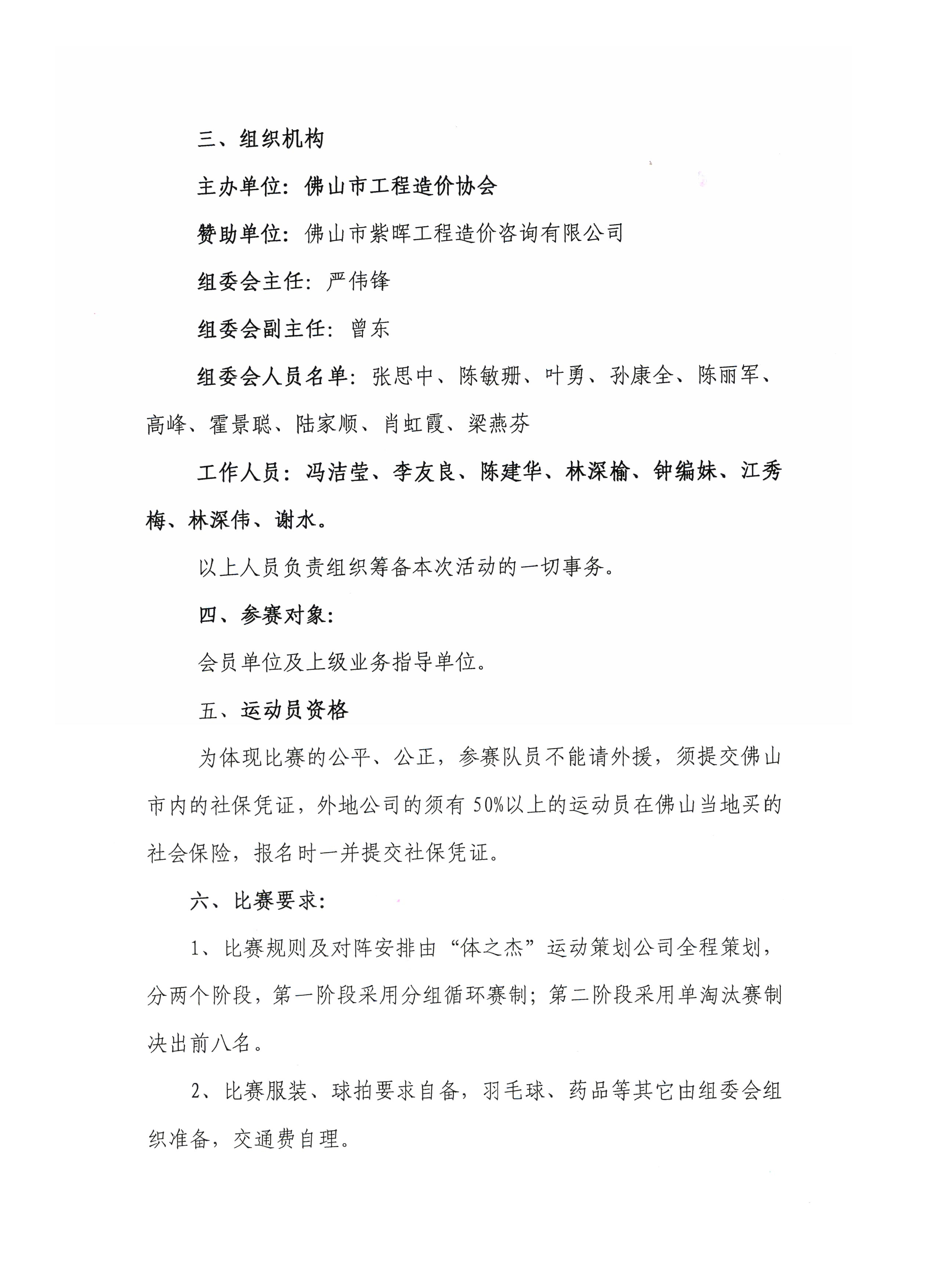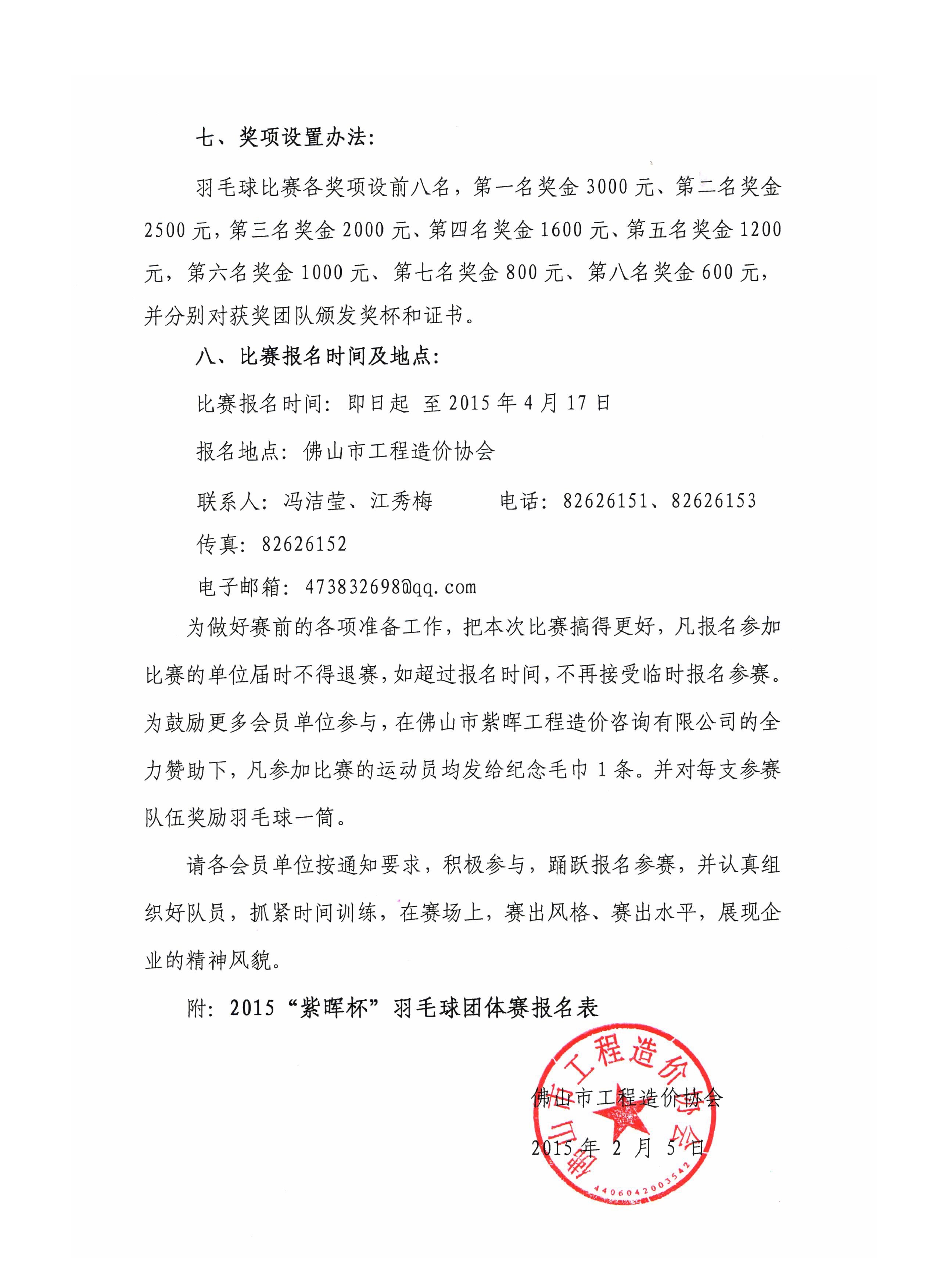 關于舉辦2015年佛山市工程造價協會“紫暉杯”羽毛球團體賽的通知