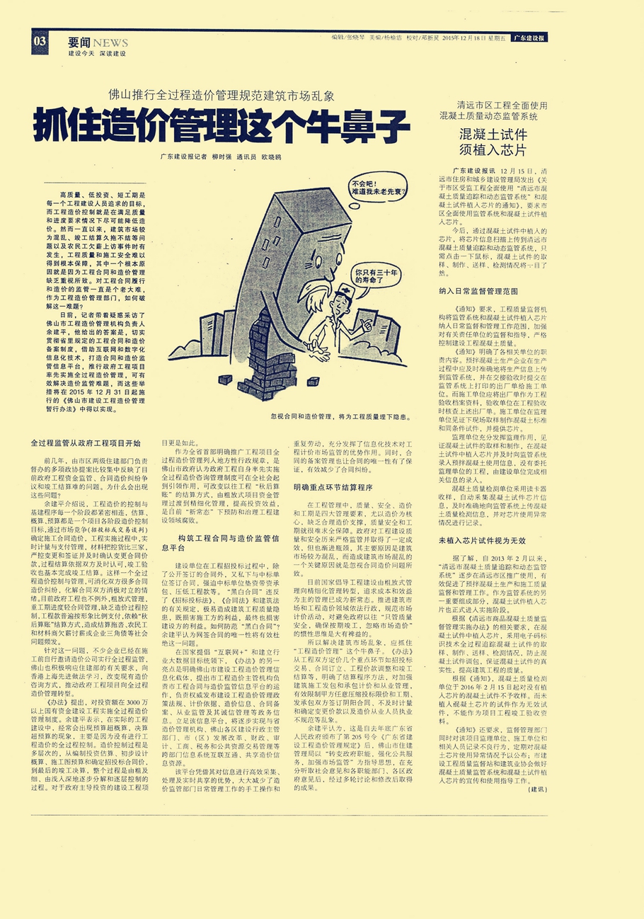 《佛山市建設(shè)工程造價(jià)管理暫行辦法》將在2015年12月31日起施行,廣東建設(shè)報(bào)記者專門就此事對(duì)佛山市工程造價(jià)管理機(jī)構(gòu)進(jìn)行了采訪報(bào)道