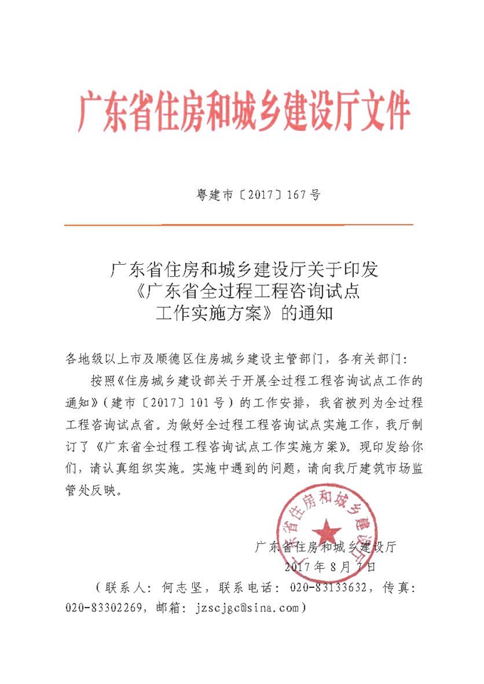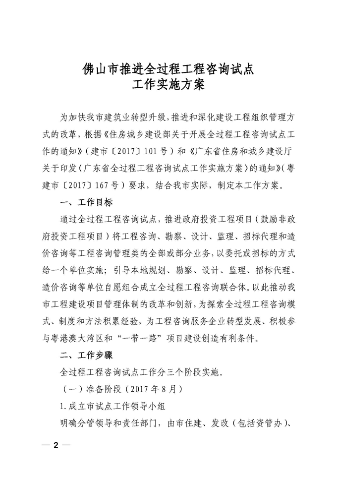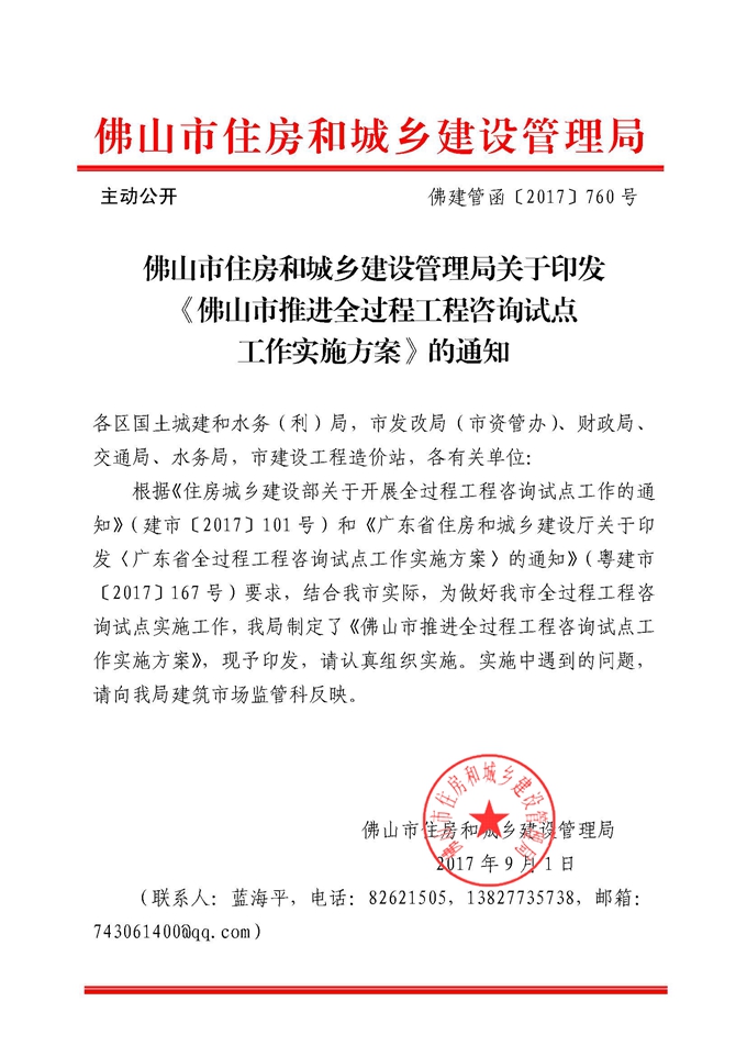 佛山市住房和城鄉建設管理局關于印發《佛山市推進全過程工程咨詢試點工作實施方案》的通知