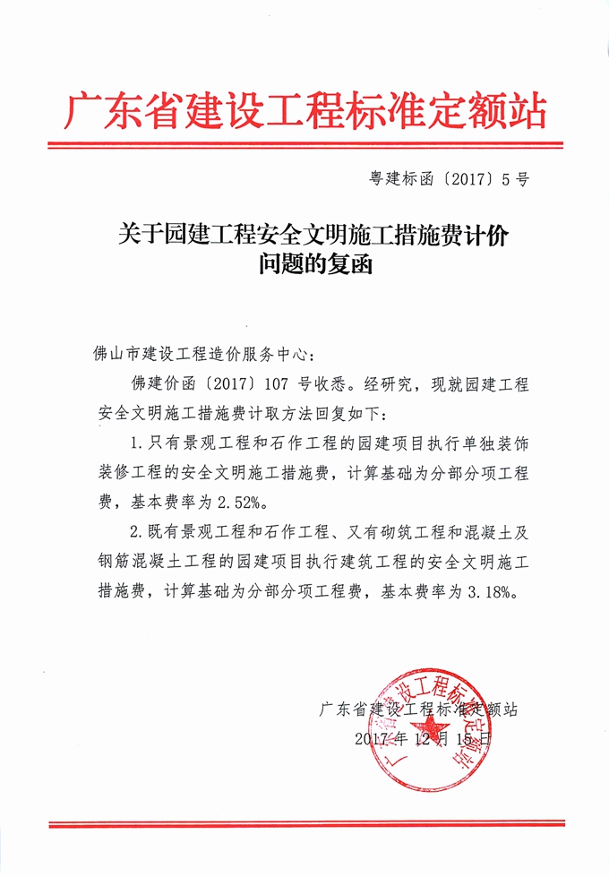 關(guān)于園建工程安全文明施工措施費(fèi)計價問題的復(fù)函
