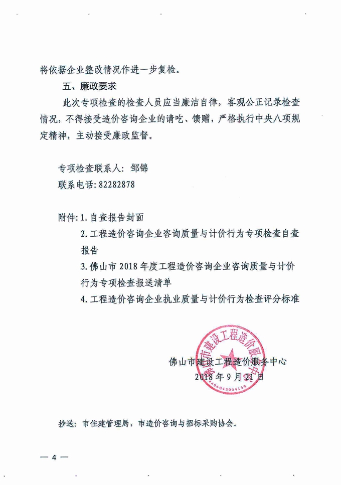 附件1.自查報(bào)告封面 2.工程造價(jià)咨詢企業(yè)咨詢質(zhì)量與計(jì)價(jià)行為專項(xiàng)檢查自查報(bào)告 3.佛山市2018年度工程造價(jià)咨詢企業(yè)咨詢質(zhì)量與計(jì)價(jià)行為專項(xiàng)檢查報(bào)送清單