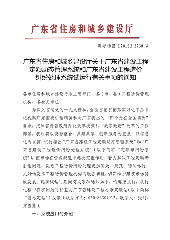 佛山市住房和城鄉建設管理局轉發省住建廳關于廣東省建設工程定額動態管理系統和廣東省建設工程造價糾紛處理系統試運行有關事項的通知