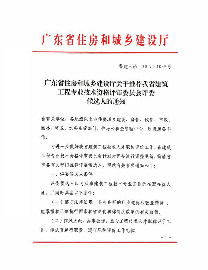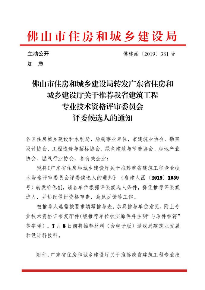 佛山市住房和城鄉建設局轉發廣東省住房和城鄉建設廳關于推薦我省建筑工程專業技術資格評審委員會評委候選人的通知