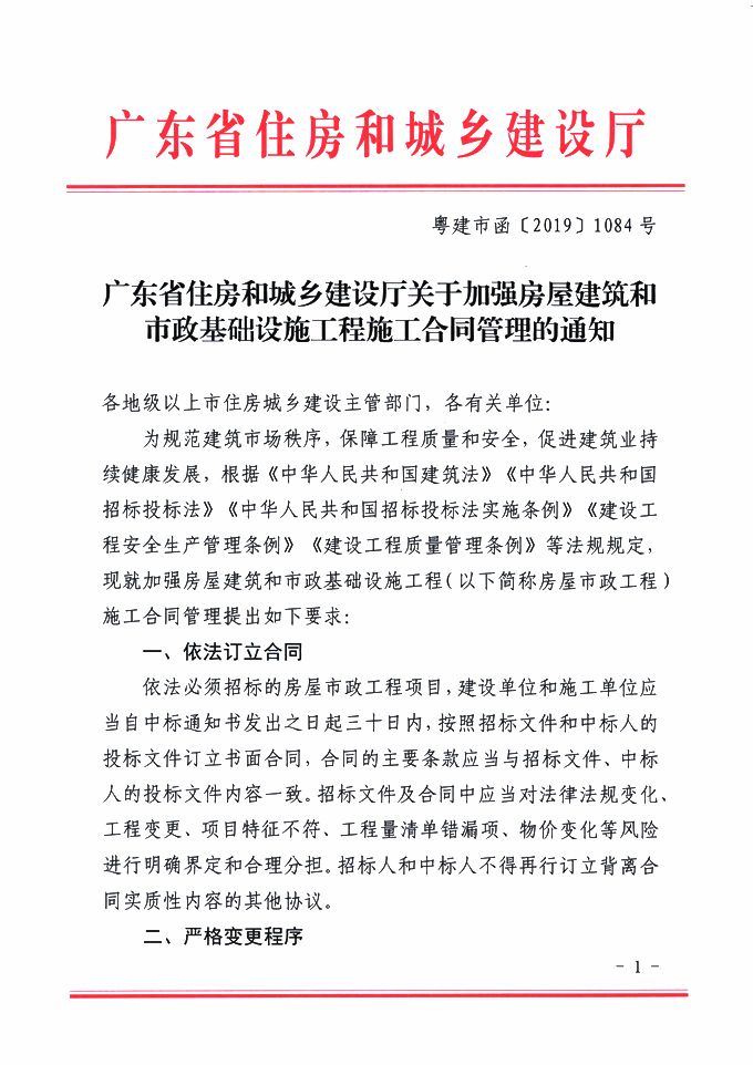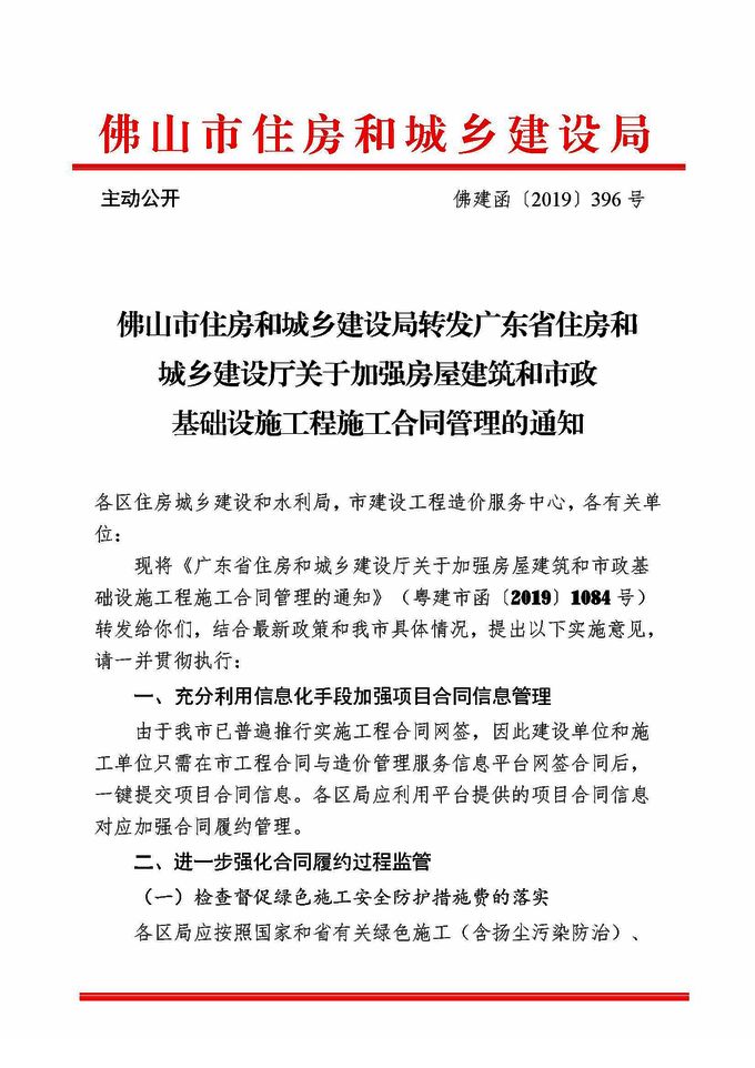 佛山市住房和城鄉建設局轉發廣東省住房和城鄉建設廳關于加強房屋建筑和市政基礎設施工程施工合同管理的通知