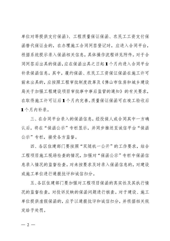 佛山市住房和城鄉建設局關于實行工程保函公示制度的通知