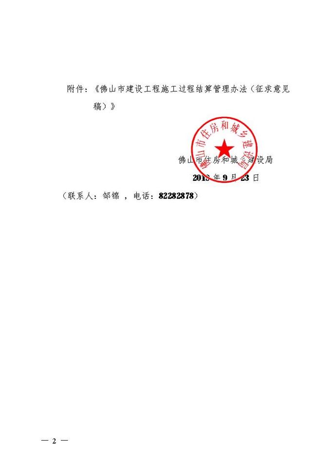 佛山市住房和城鄉建設局關于征求《佛山市建設工程施工過程結算管理辦法(征求意見稿)意見的通知