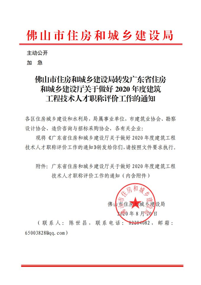佛山市住房和城鄉(xiāng)建設(shè)局轉(zhuǎn)發(fā)廣東省住房和城鄉(xiāng)建設(shè)廳關(guān)于做好2020年度建筑工程技術(shù)人才職稱評(píng)價(jià)工作的通知