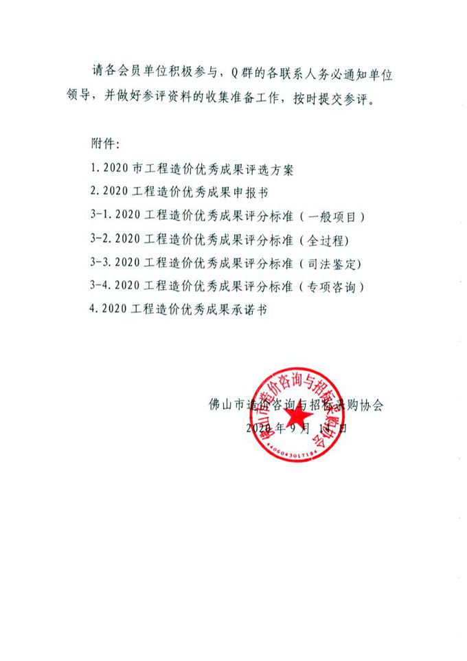 附件1.2020市工程造價優秀成果評選方案