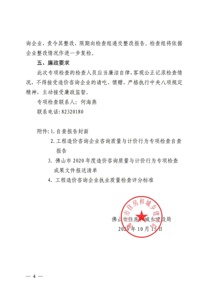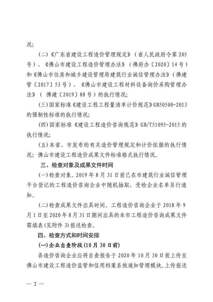 佛山市住房和城鄉建設局關于實施2020年度工程造價咨詢企業造價咨詢質量與計價行為專項檢查安排的通知