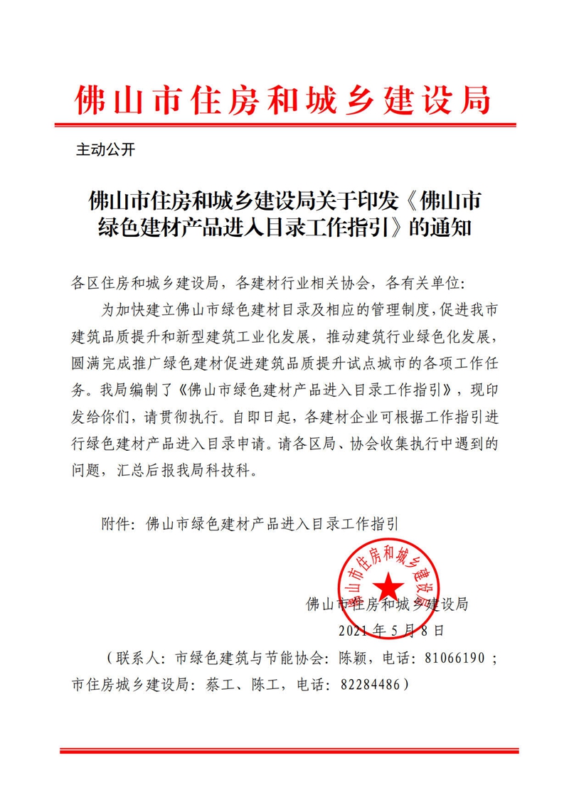 佛山市住房和城鄉建設局關于印發《佛山市綠色建材產品進入目錄工作指引》的通知