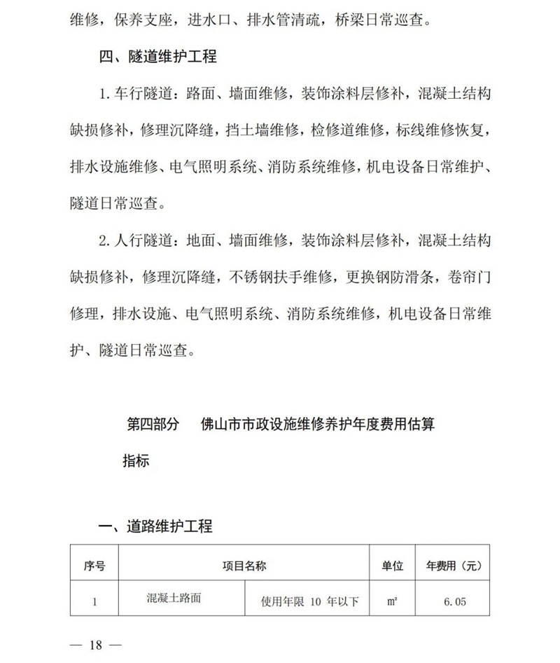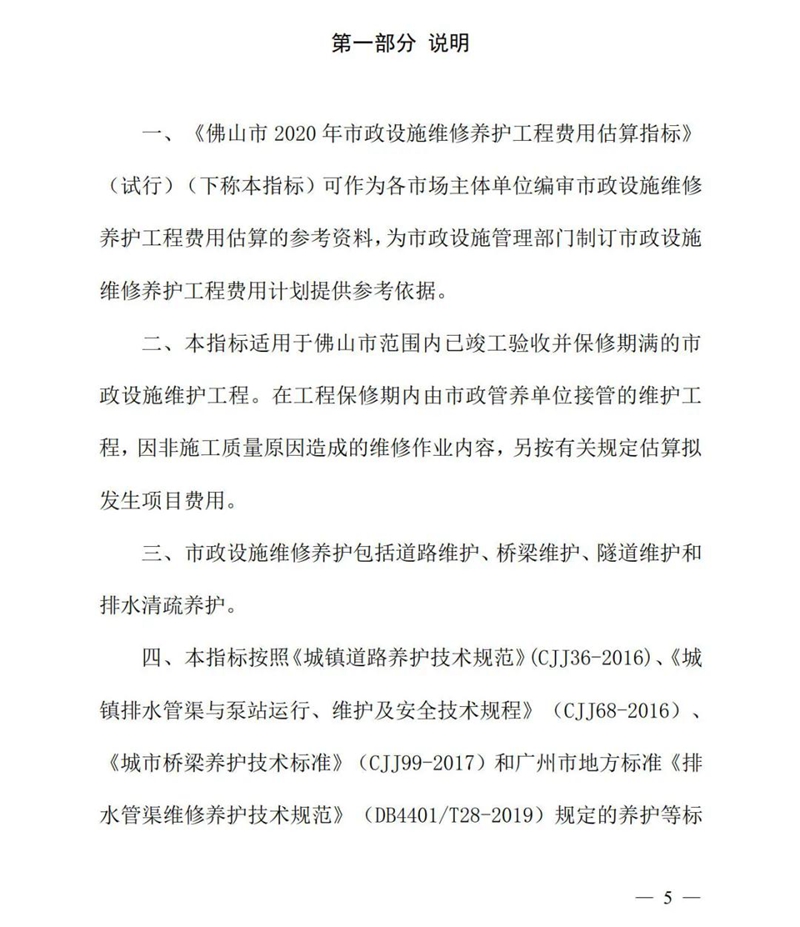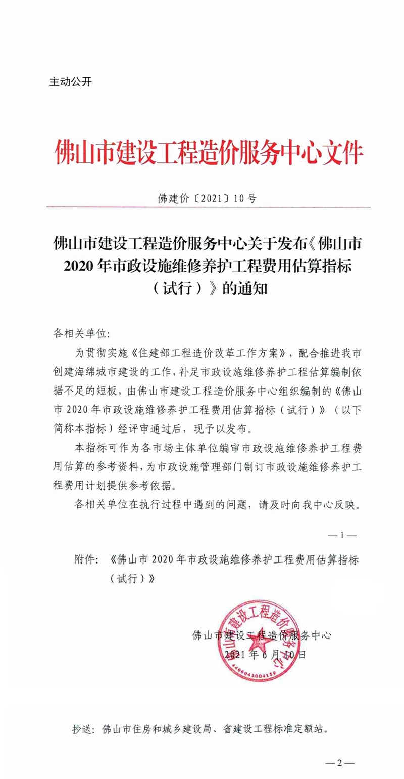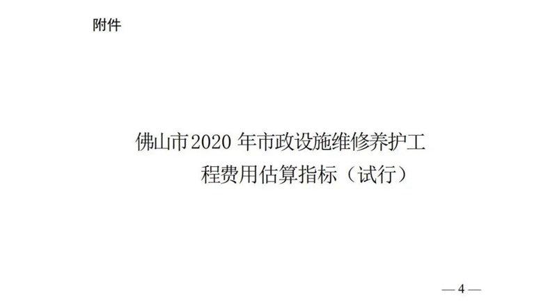 佛山市建設工程造價服務中心關于發布《佛山市2020年市政設施維修養護工程費用估算指標 (試行)》的通知