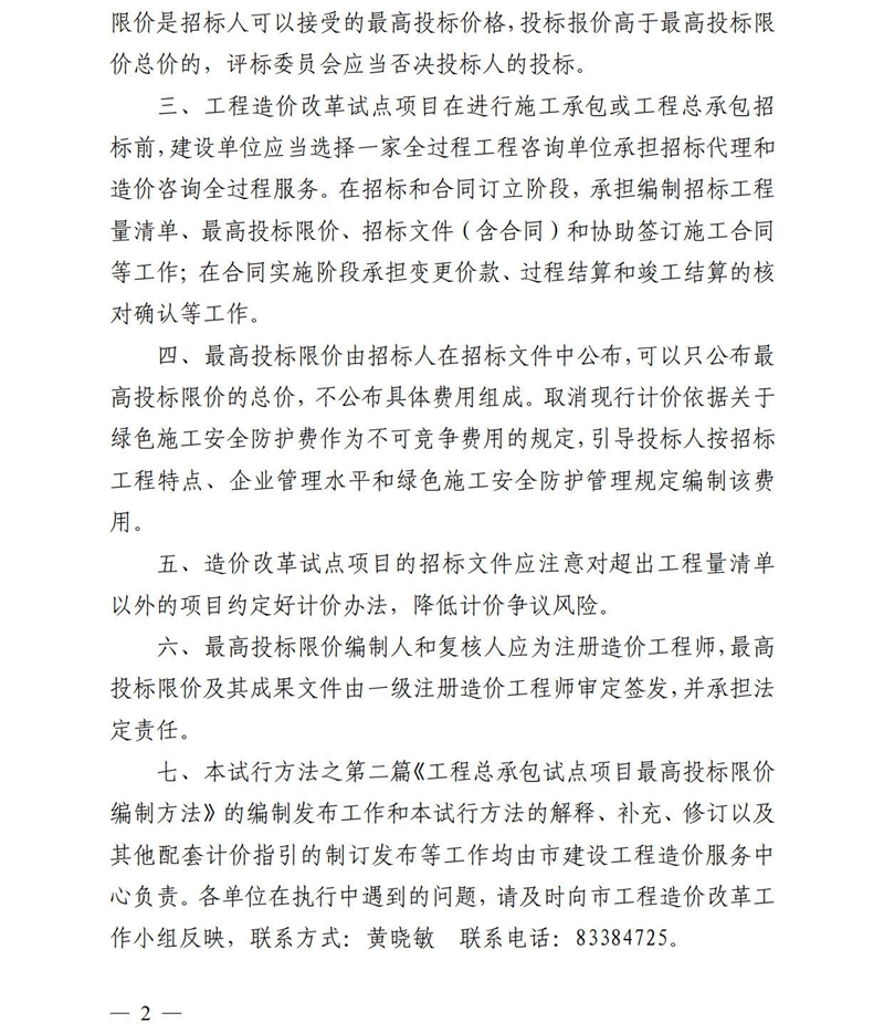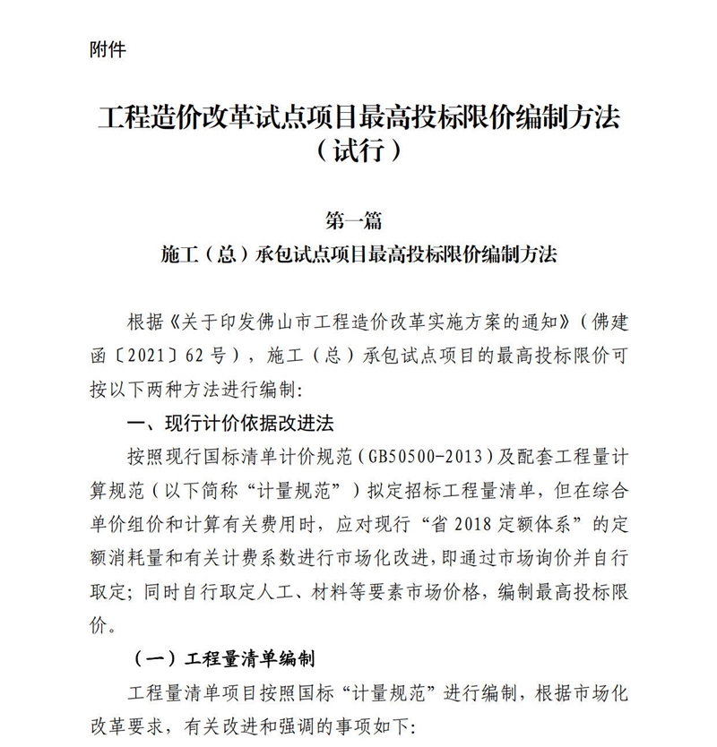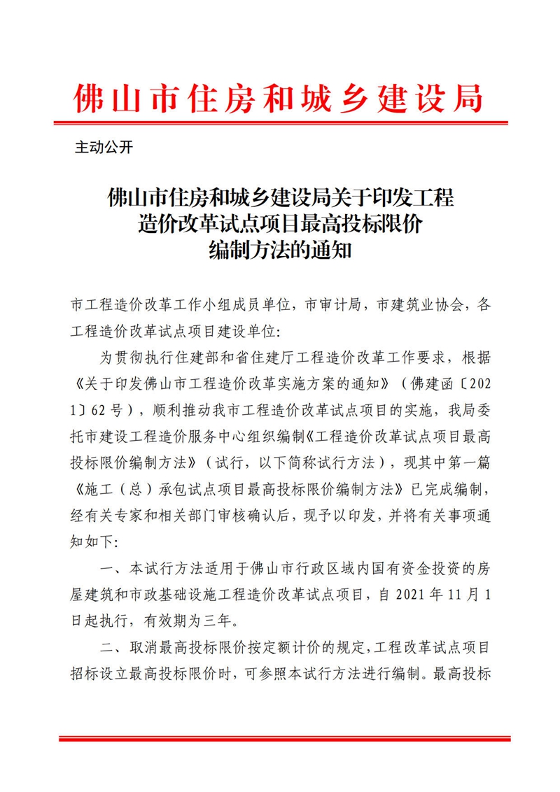 佛山市住房和城鄉建設局關于印發工程造價改革試點項目最高投標限價編制方法的通知