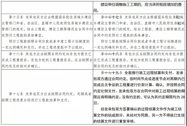 為貫徹落實國務院決策部署,進一步做好清理政府部門和國有企業拖欠民營企業中小企業賬款工作,增加推行建筑工程施工過程結算的條款。明確過程結算的內容,規定過程結算開展的基本流程和時限要求,提出不得以未完成政府審計作為延期結算理由。