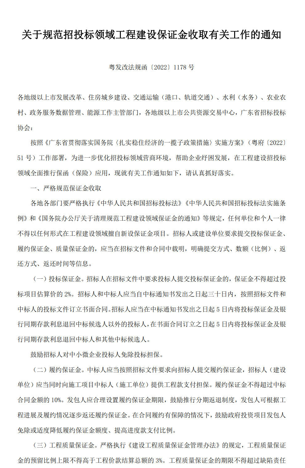轉發|關于規范招投標領域工程建設保證金收取有關工作的通知
