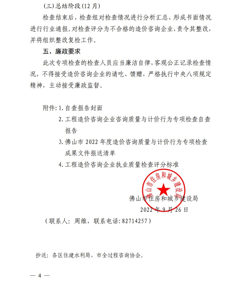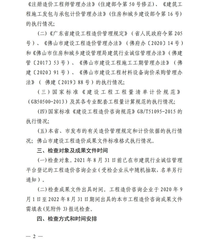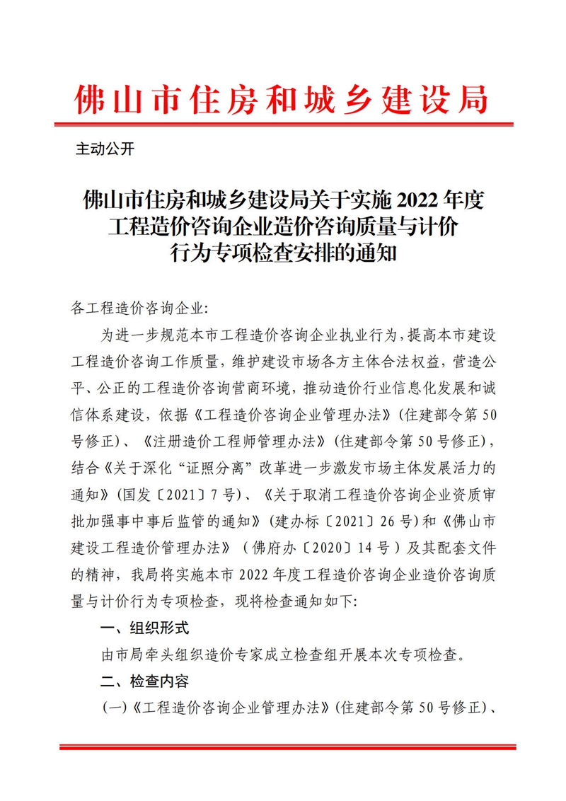佛山市住房和城鄉建設局關于實施2022年度工程造價咨詢企業造價咨詢質量與計價行為專項檢查安排的通知