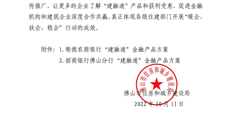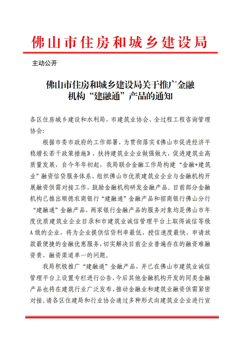 轉發 | 佛山市住房和城鄉建設局關于推廣金融機構“建融通”產品的通知