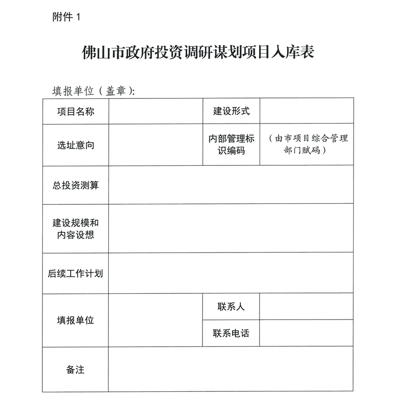 附件:1.佛山市政府投資調(diào)研謀劃項(xiàng)目入庫表
