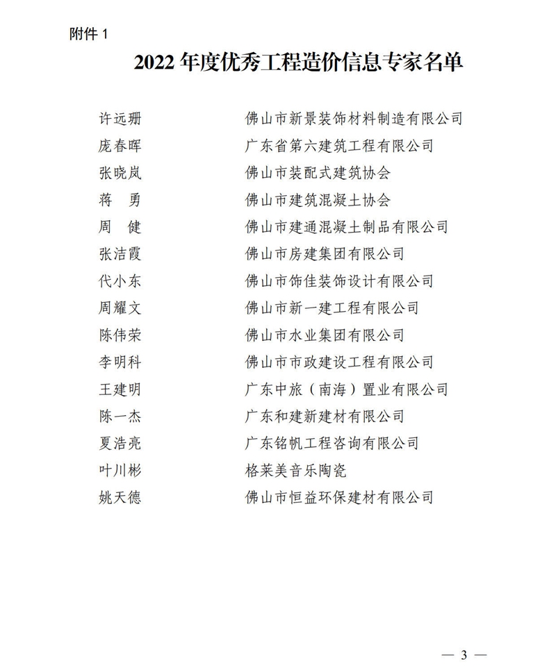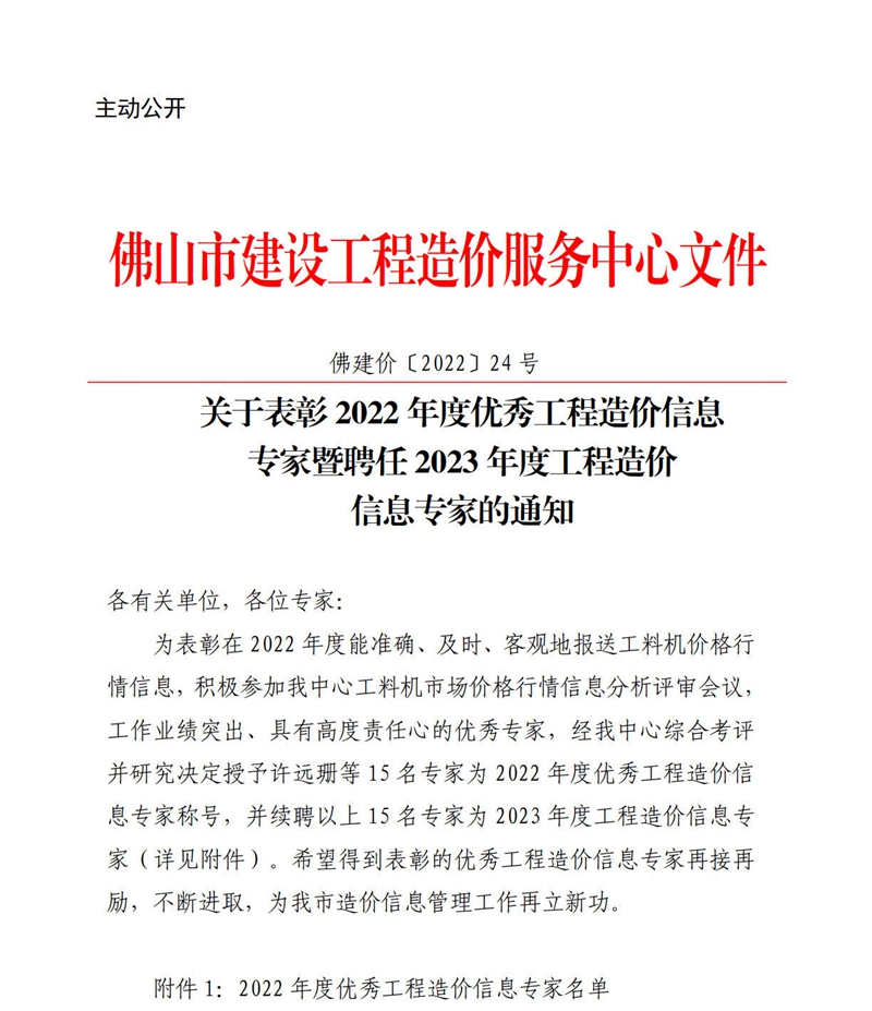 關(guān)于表彰2022年度優(yōu)秀工程造價(jià)信息專家暨聘任2023年度工程造價(jià)信息專家的通知