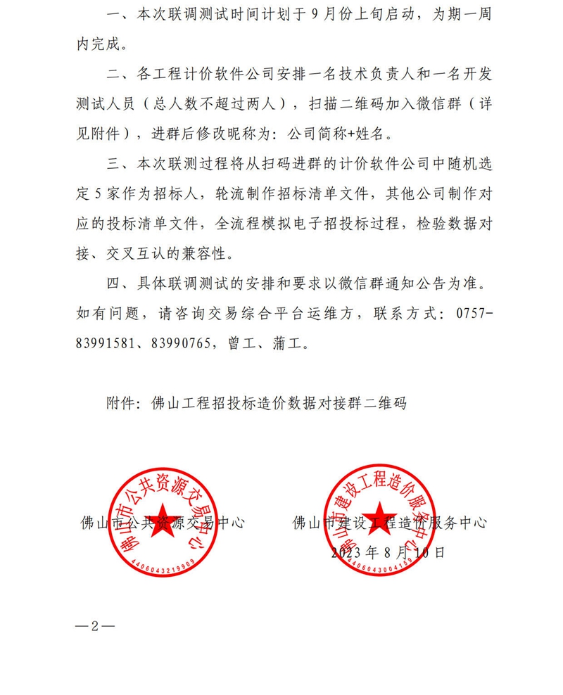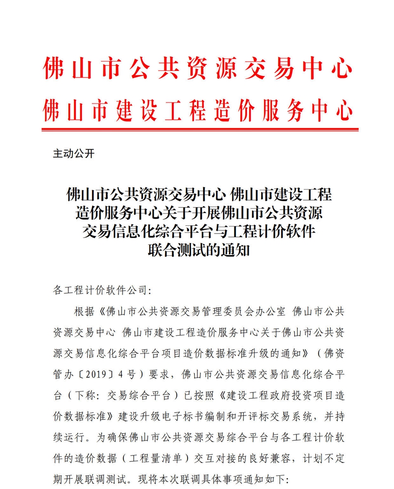 佛山市公共資源交易中心 佛山市建設工程造價服務中心關于開展佛山市公共資源交易信息化綜合平臺與工程計價軟件聯合測試的通知