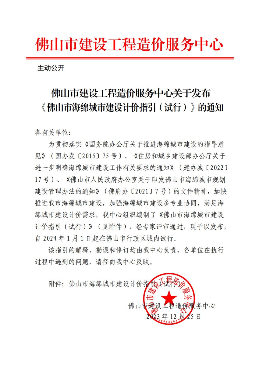 轉(zhuǎn)發(fā) | 佛山市建設(shè)工程造價服務(wù)中心關(guān)于發(fā)布《佛山市海綿城市建設(shè)計價指引(試行)》的通知
