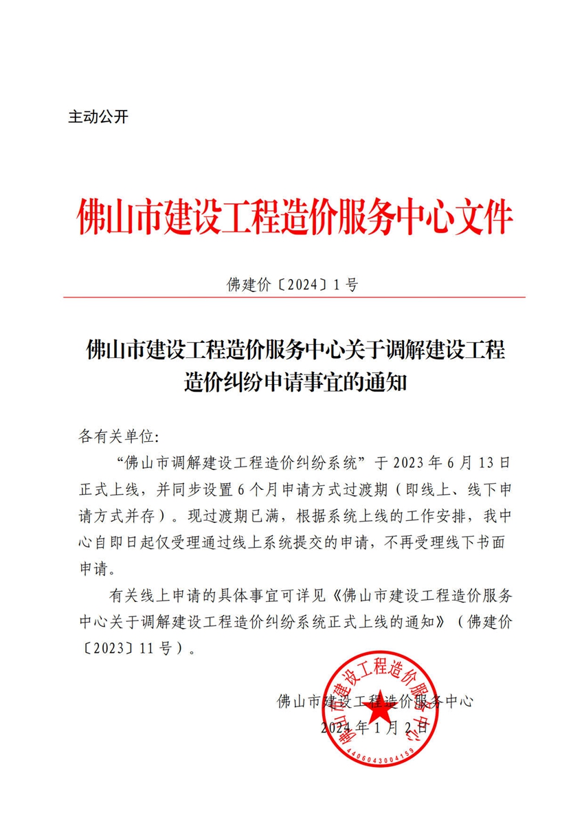 轉發 | 佛山市建設工程造價服務中心關于調解建設工程造價糾紛申請事宜的通知