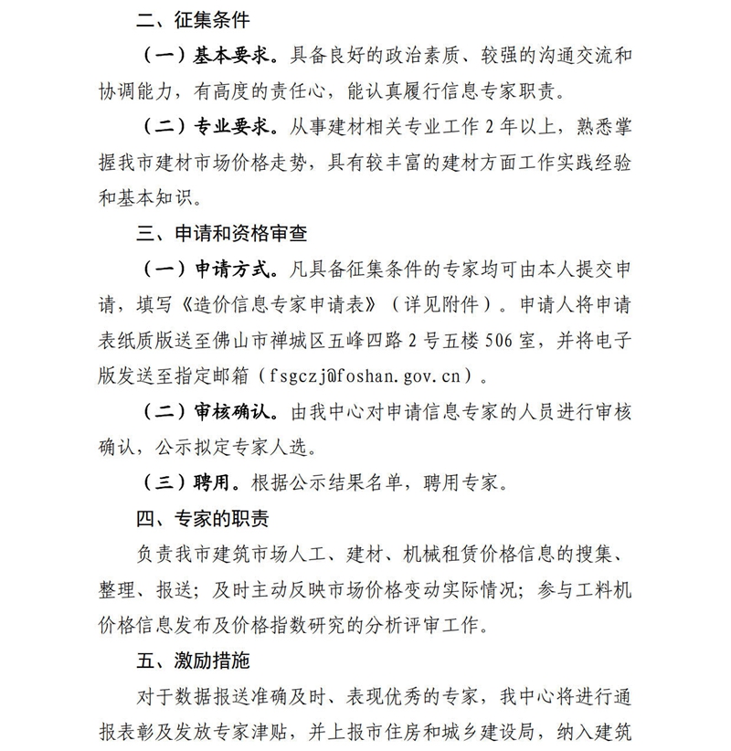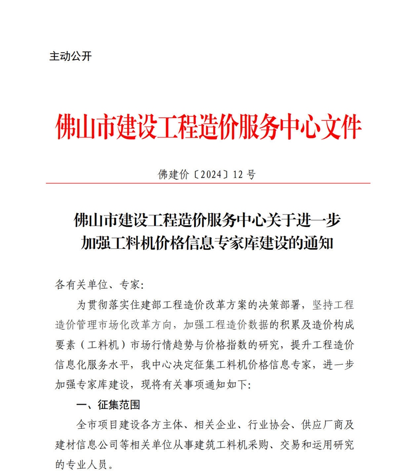 轉發 | 佛山市建設工程造價服務中心關于進一步加強工料機價格信息專家庫建設的通知