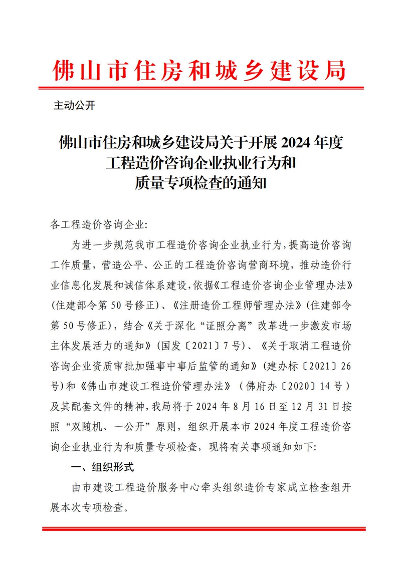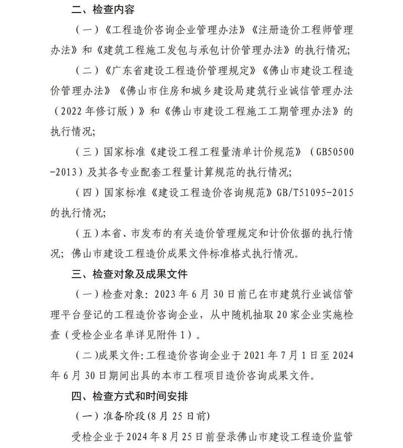 轉發 | 佛山市住房和城鄉建設局關于開展2024年度工程造價咨詢企業執業行為和質量專項檢查的通知