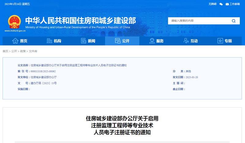 為進一步推進政務服務標準化、規范化、便利化,提高“互聯網+政務服務”水平,住房城鄉建設部決定啟用注冊監理工程師等專業技術人員電子注冊證書。現將有關事項通知如下: