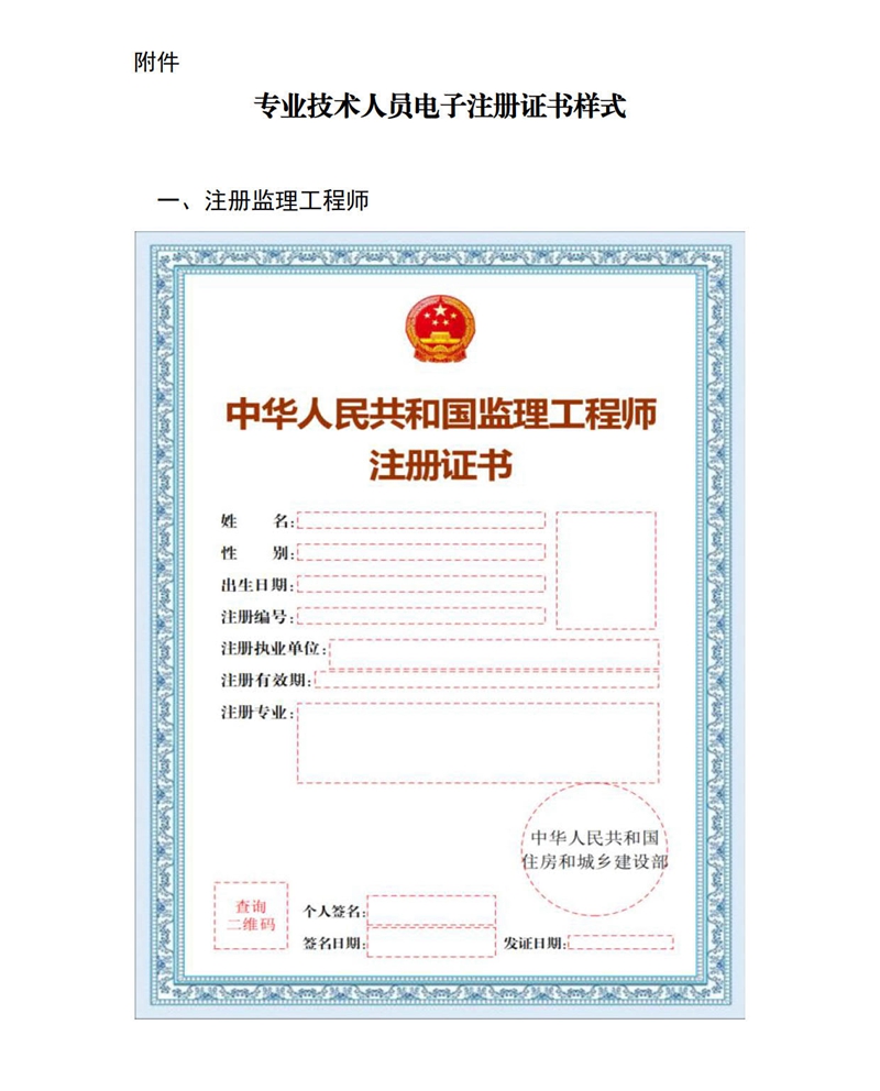 住建部 | 關于啟用注冊監理工程師等專業技術人員電子注冊證書的通知