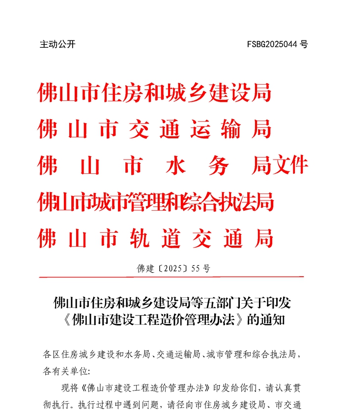 轉發 | 佛山市住房和城鄉建設局等五部門關于印發《佛山市建設工程造價管理辦法》的通知