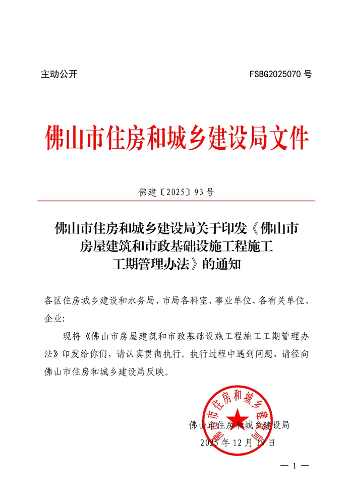 轉發 | 佛山市住房和城鄉建設局關于印發《佛山市房屋建筑和市政基礎設施工程施工工期管理辦法》的通知
