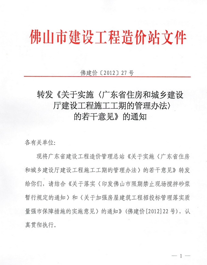 轉(zhuǎn)發(fā)《關(guān)于實施〈廣東省住房和城鄉(xiāng)建設(shè)廳建設(shè)工程施工工期的管理辦法〉的若干意見》的通知