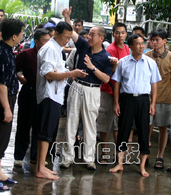 昨天早晨7時多,梁紹棠一行分別巡視了汾江南路、佛山市季華鋁業(yè)公司和禪城區(qū)番村、南海區(qū)大瀝鎮(zhèn)譚邊村等受積水影響比較嚴重的區(qū)域。由于降雨量過大,我市大部分道路出現(xiàn)了積水現(xiàn)象,部分道路因為積水過深,暫時只有公交車等大型車輛才能通過,從而造成了多處交通堵塞;而在禪城區(qū)一些地處低洼的企業(yè)廠房,由于水浸其運作受影響,暫停了生產(chǎn);而在南海區(qū)大瀝譚邊村,數(shù)百畝農(nóng)田和十幾間民房被積水浸泡,有近500戶居民生活受到影響。根據(jù)市三防指揮部初步統(tǒng)計,受此次特大暴雨影響,全市農(nóng)作物受浸40924畝,廠房受浸24.5萬平方米,民房受浸3270間,商鋪受浸44.5萬平方米,初步估算此次特大暴雨造成經(jīng)濟損失5135萬元。