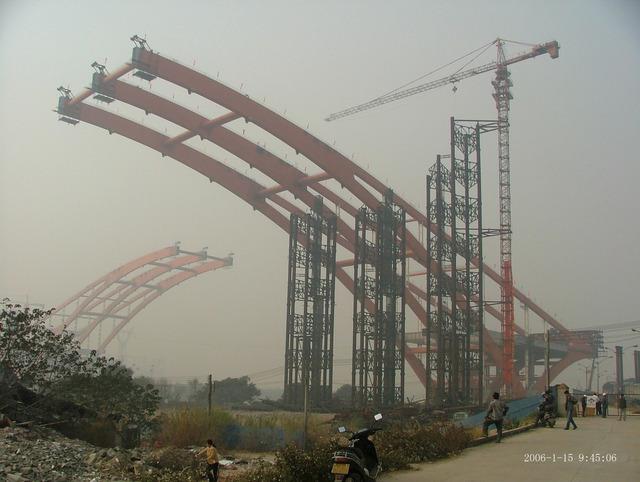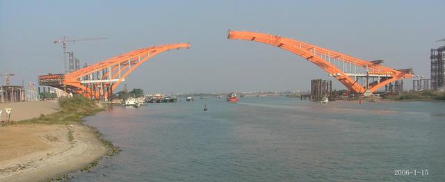 昨日上午,近百名工程人員在南岸現場進行試轉前的最后檢查。10時30分,完成了牽引力加載后,項目負責人發布了南岸拱肋的試轉指令。至下午3時,南岸重達1.48萬噸的拱肋一共轉動了90度。由于是初次平轉,為了慎重起見,原計劃平轉過程需要20多個小時,但實際上只用了4個多小時,平轉時間大為縮短。
