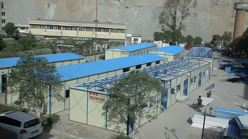由于環(huán)境的限制,目前可以搭建板房的場(chǎng)地很有限。現(xiàn)時(shí),佛山市在汶川可進(jìn)行活動(dòng)板房搭建的地點(diǎn)只有1個(gè)——威州中學(xué)北校區(qū)。雖然從成都到汶川需經(jīng)過三天的時(shí)間,但在生產(chǎn)企業(yè)、建設(shè)部門、交通部門的努力下,一車車的板房已經(jīng)陸續(xù)運(yùn)進(jìn)汶川。截至到6月4日中午12時(shí),已進(jìn)板房材料400套;在建25套、待建353套,已完成22套。