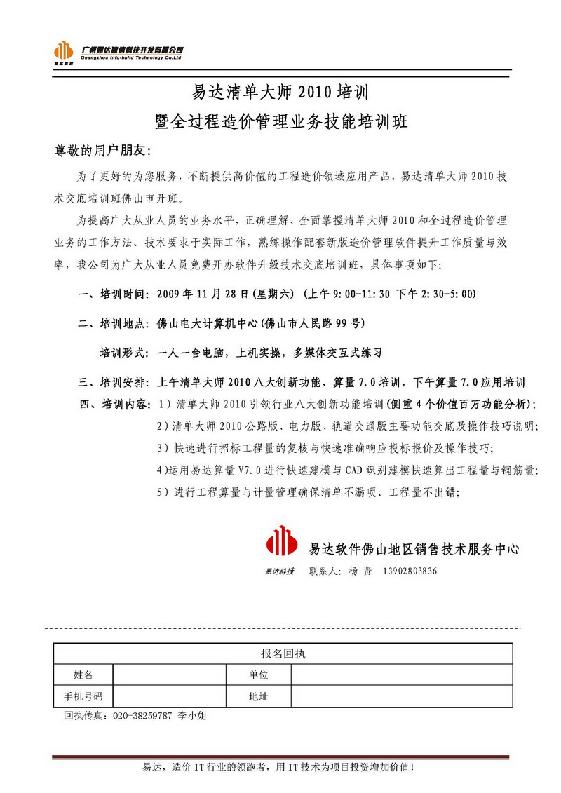 易達清單大師2010培訓暨全過程造價管理業務技能培訓班