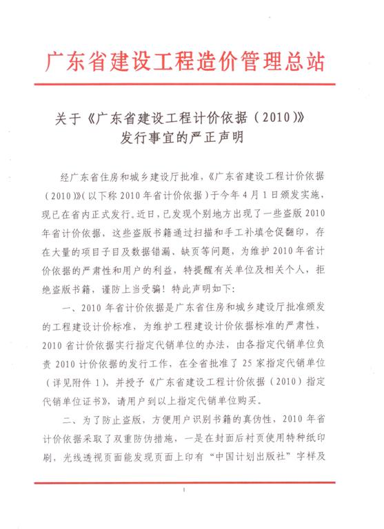 關于《廣東省建設工程計價依據(2010)》的嚴正聲明