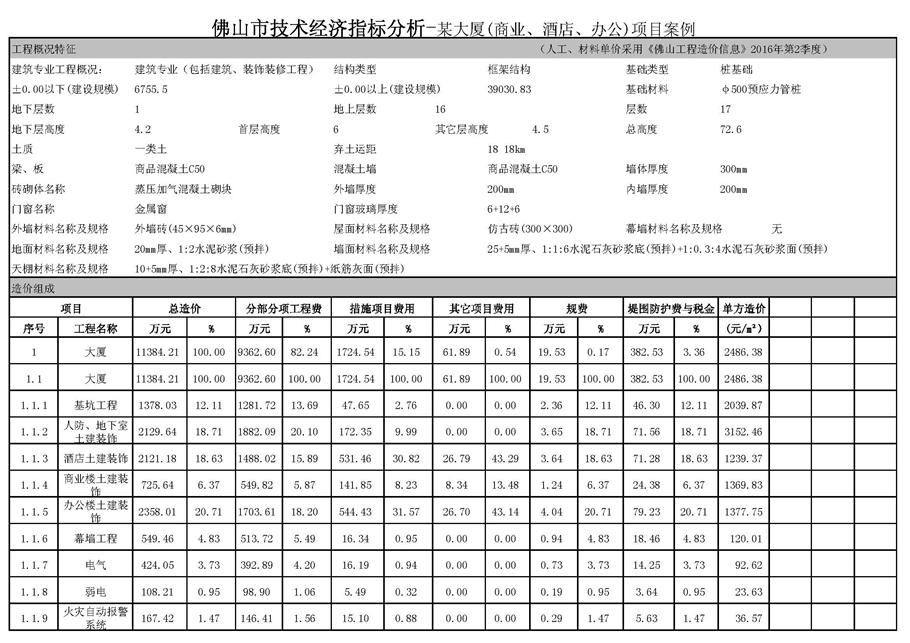 佛山市2016年第3季度技術經濟指標分析—某大廈?(商業、酒店、辦公)項目案例1