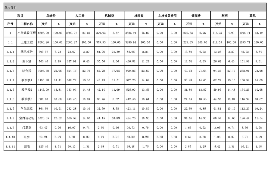 佛山市2016年第3季度技術經濟指標分析—某小學項目案例2